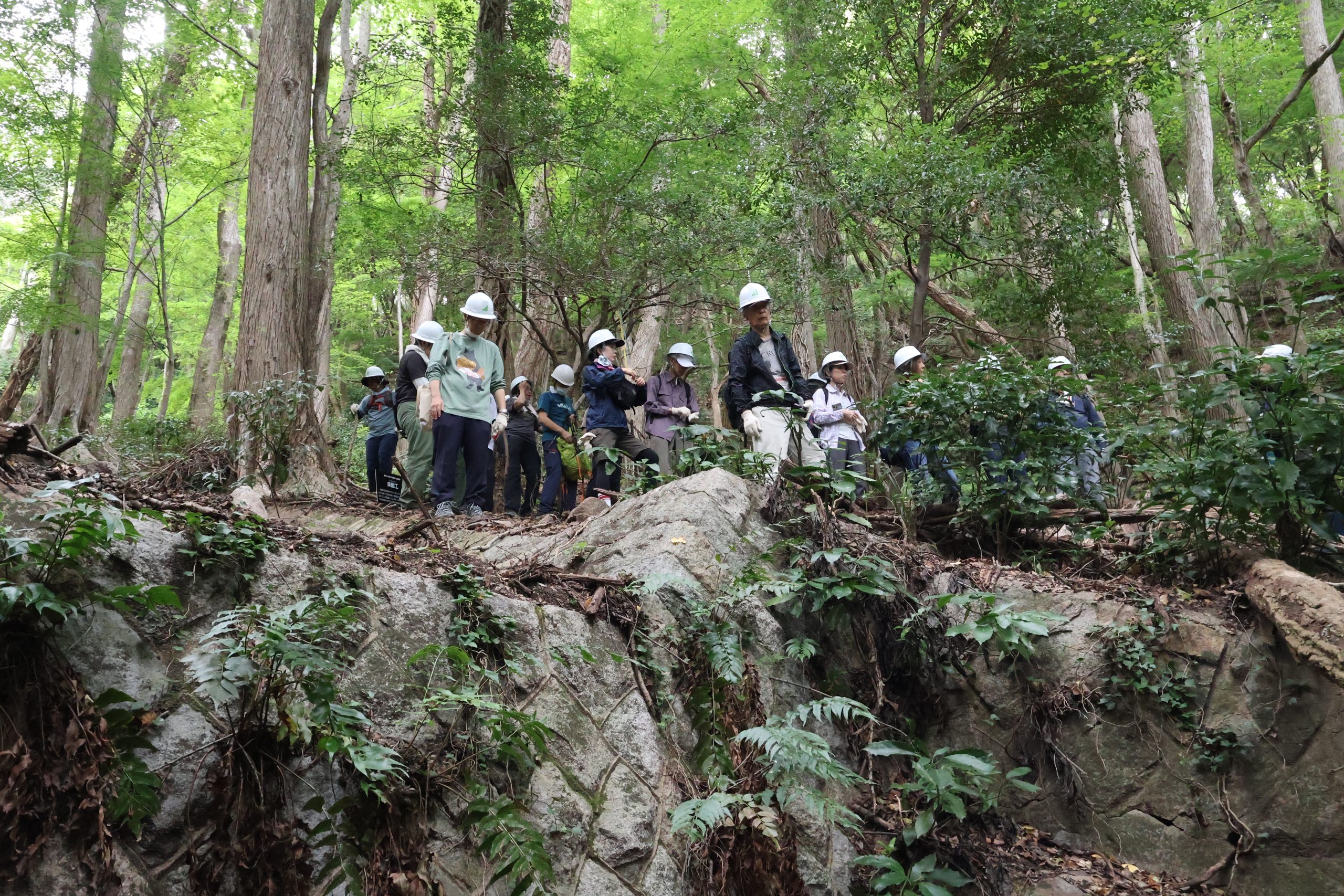 災害の歴史や当時の時代背景、治山遺構の機能などに耳を傾ける参加者